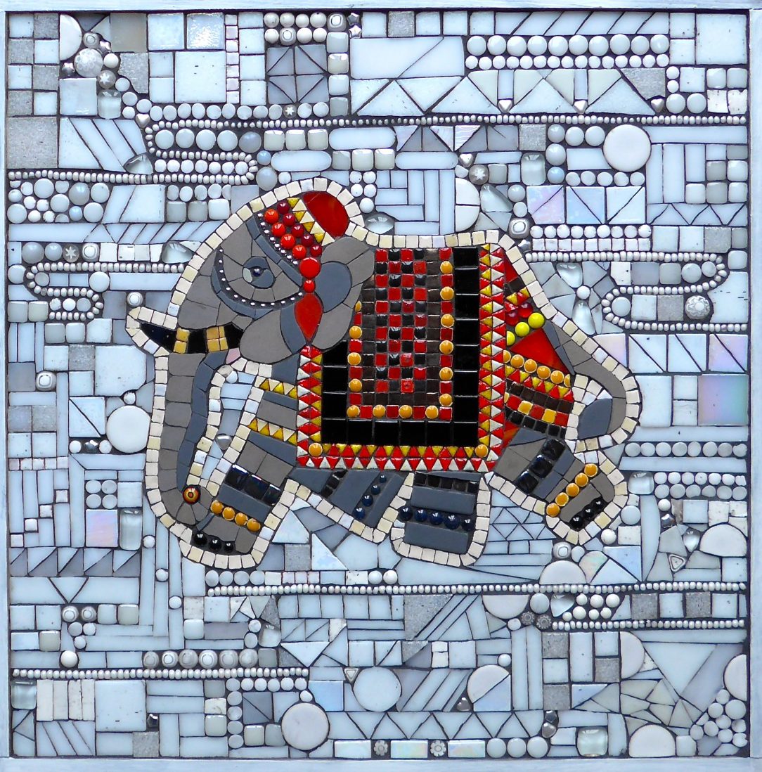 Created for the exhibition at Shine, Leeds. Ceramic and micro tiles, hand fused glass, assorted white stained glass, beads and glass details, Ball chain